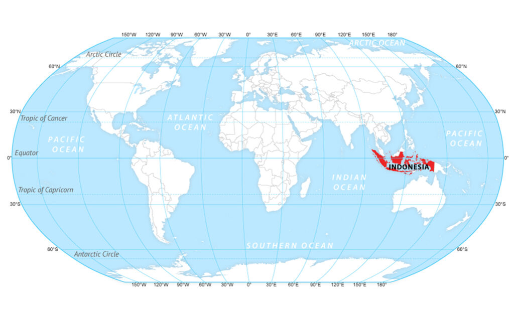 A Indonésia é um arquipélago com mais de 17 mil ilhas, espalhadas entre o Oceano Índico e o Pacífico. Só para você ter ideia, ela se estende por mais de 5 mil km de leste a oeste, quase como atravessar os EUA de ponta a ponta… só que no mar.